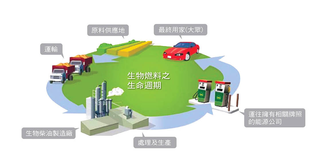 • 使用生物燃料所產生的溫室氣體比石化燃料少,比石化燃料清潔及安全,有助於減低污染及改善溫室效應